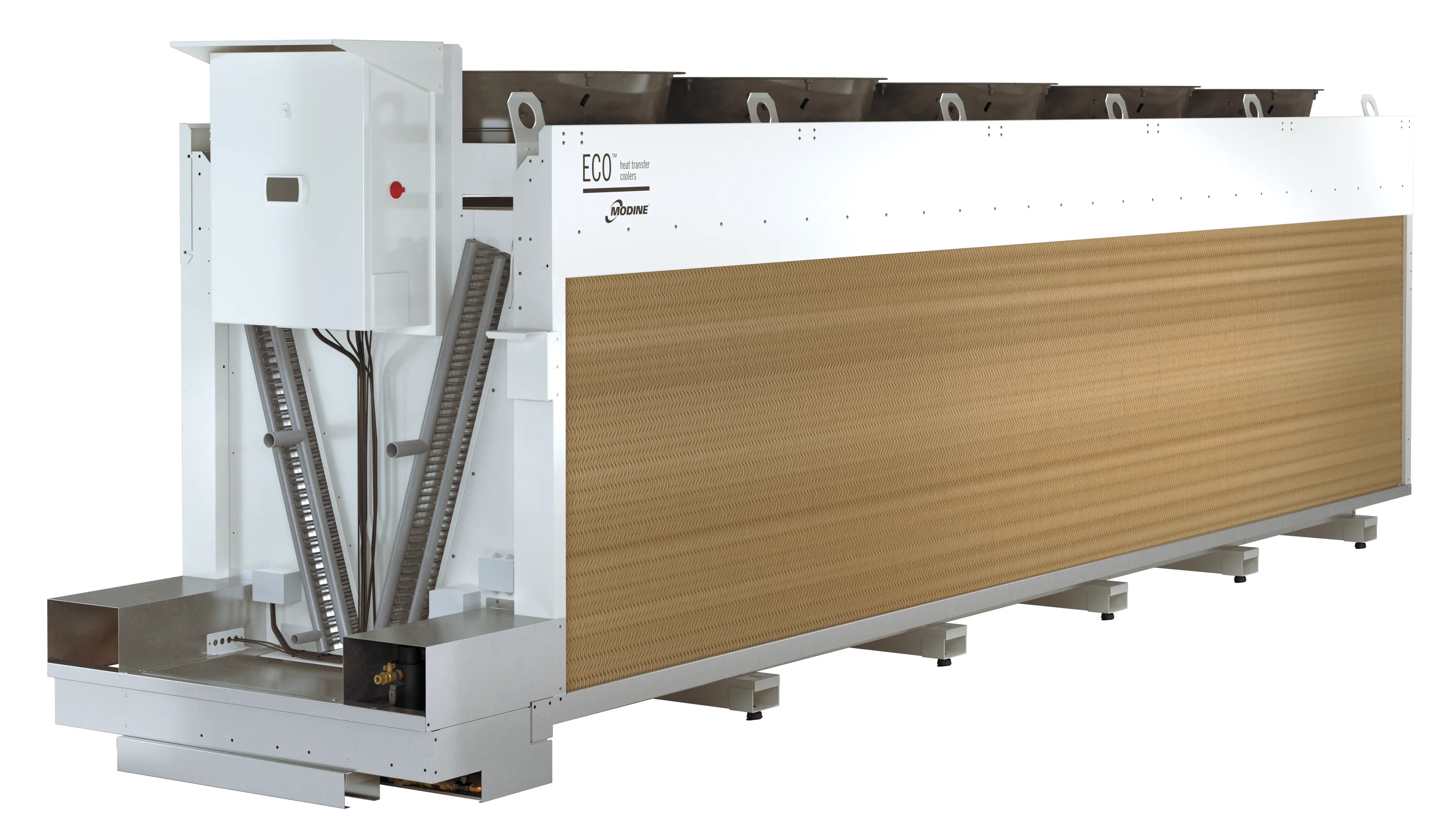 Modine foresaw the importance of adiabatic panels in improving cooling efficiency and developed ECO-BATIC®, a compact, high-performance line of gas coolers designed to meet new environmental standards using CO₂ refrigerants.